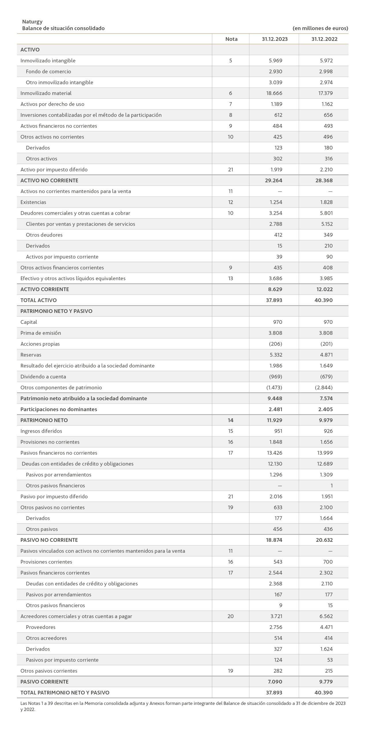 Antes de explicar la estructura de un balance y sus aspectos más representativos, es necesario entender la importancia que tiene este estado financiero. Para ello, vamos a partir del balance de Naturgy publicado en su memoria anual correspondiente al ejercicio 2023.