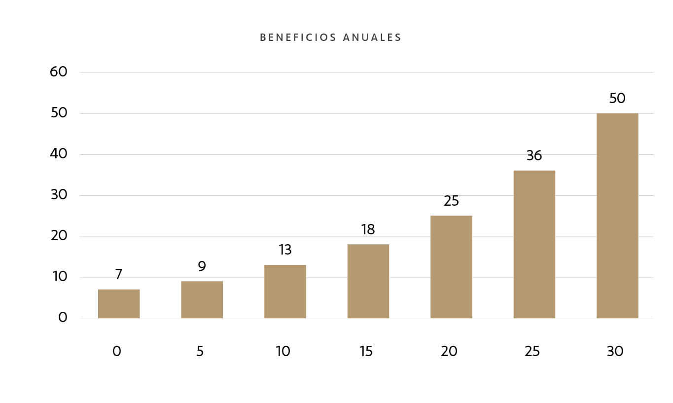 Gráfico 3: Evolución de los beneficios anuales cada cinco años