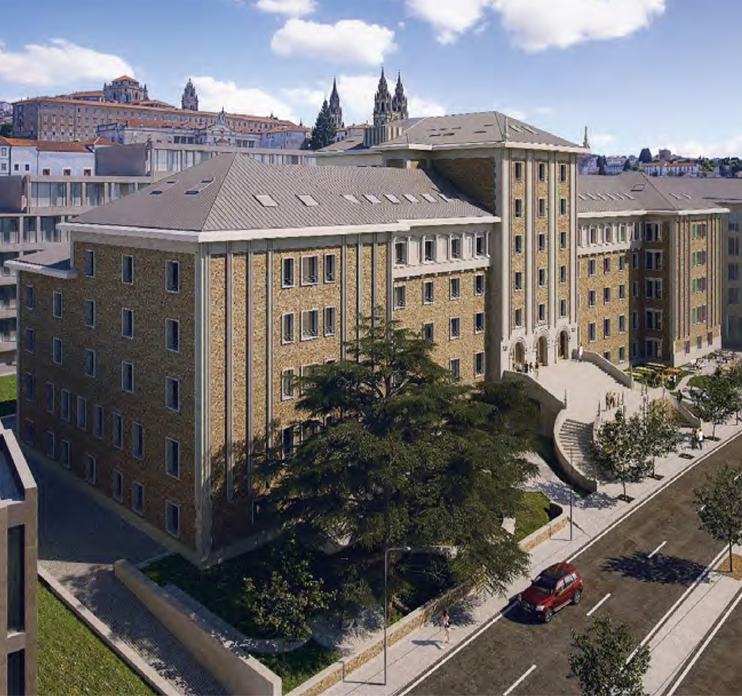 Reposicionamiento de un antiguo hospital en una residencia de estudiantes de nueva generación en Santiago de Compostela.